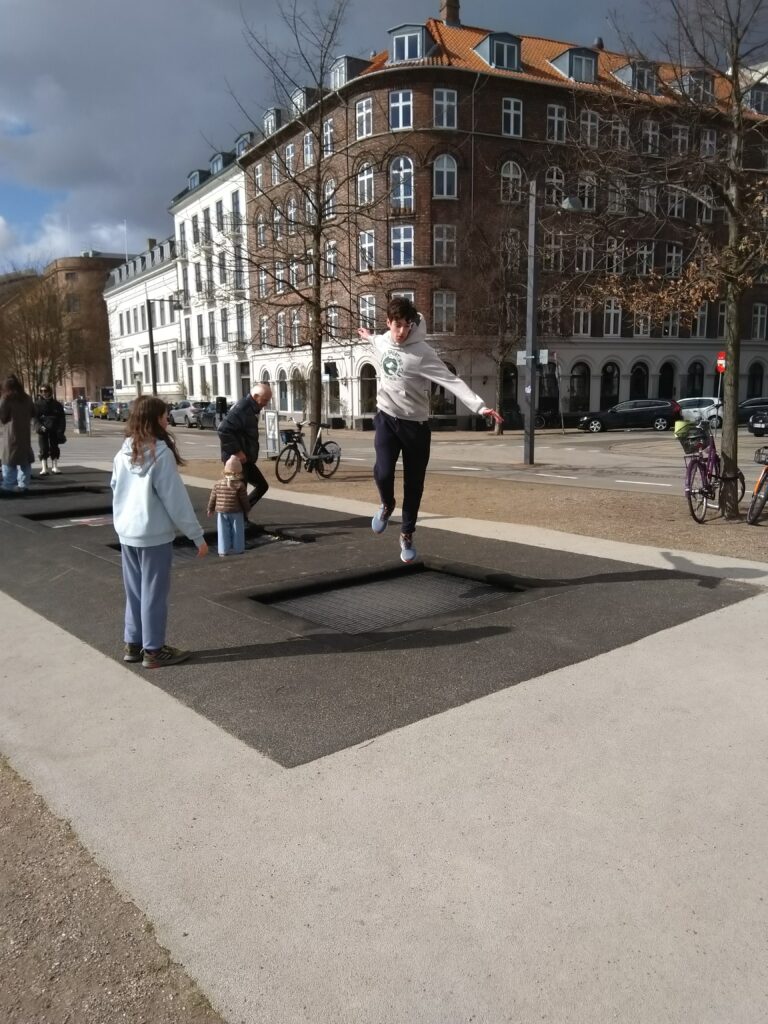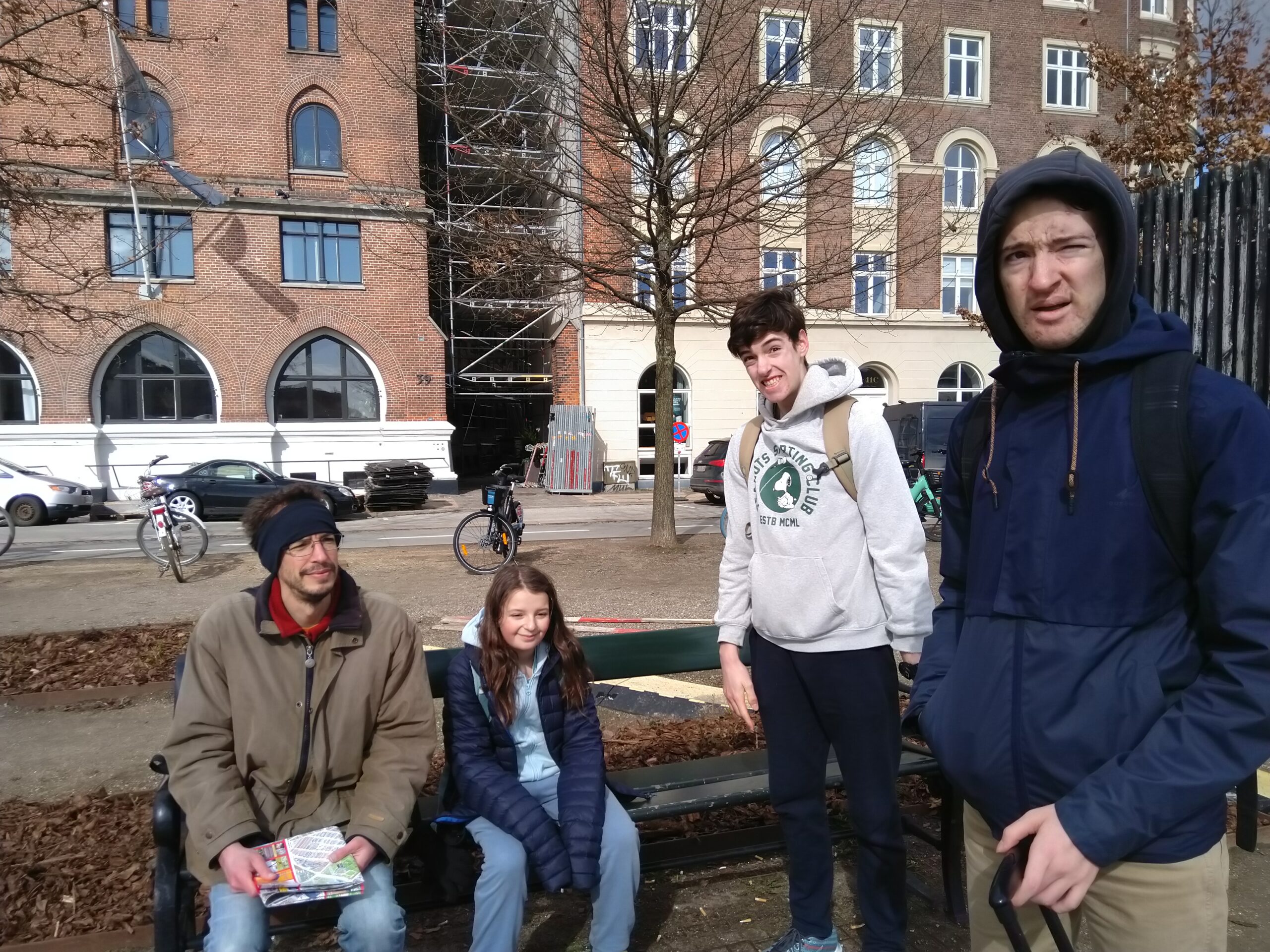 Nous sommes arrivés à Copenhague le samedi matin et avons traversé la ville du port à notre hôtel. 2,5 km à tirer la grosse valise et porter les sacs à dos. Les roulettes selon le type de pavement nous ont bercé de musique. Quelle joie pour moi de m’extasier sur les signes printanniers. Enfin du vert, des fleurs. Nous sommes partis, il restait pas mal de neige. Notre jardin était toujours blanc.