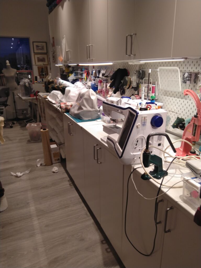 Anita a carrément un atelier de couture car c’est l’un de ses jobs. Cette femme a de multiples talents : entraîneuse de hockey et de patin, couturière, championne de tir… Une chouette rencontre.