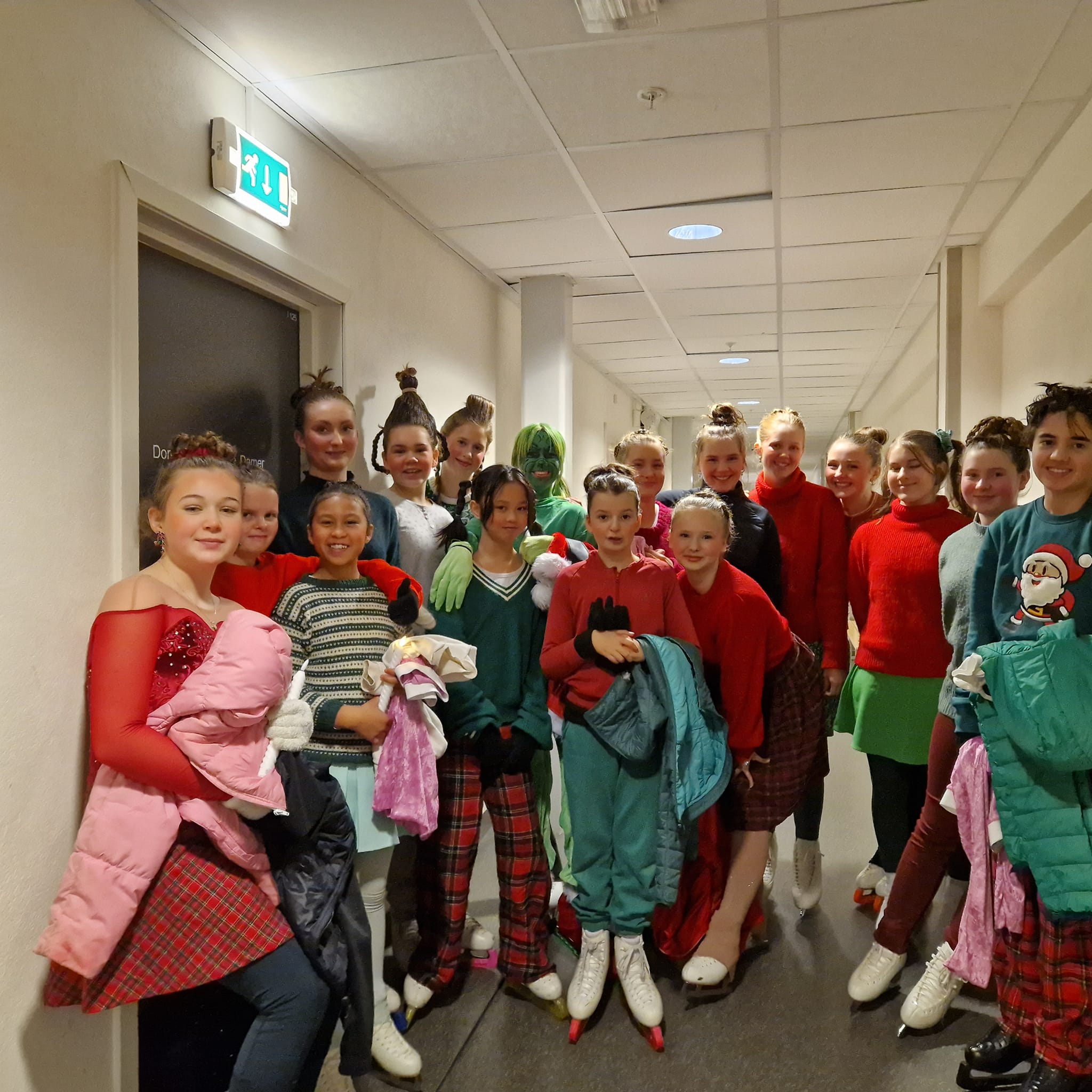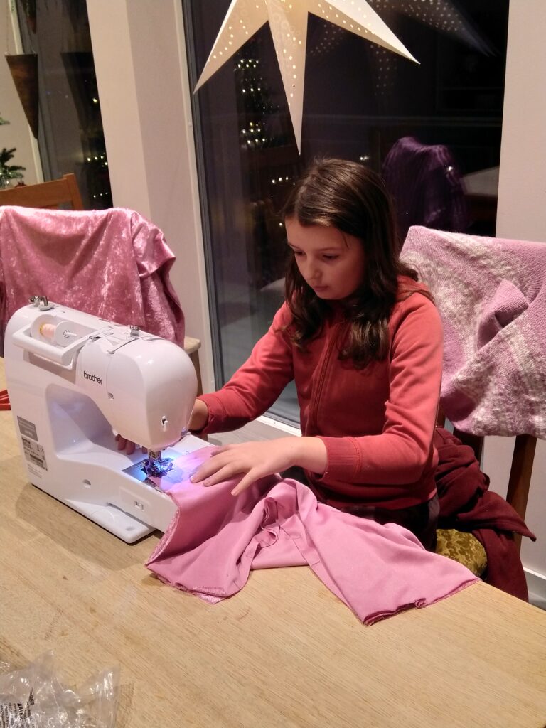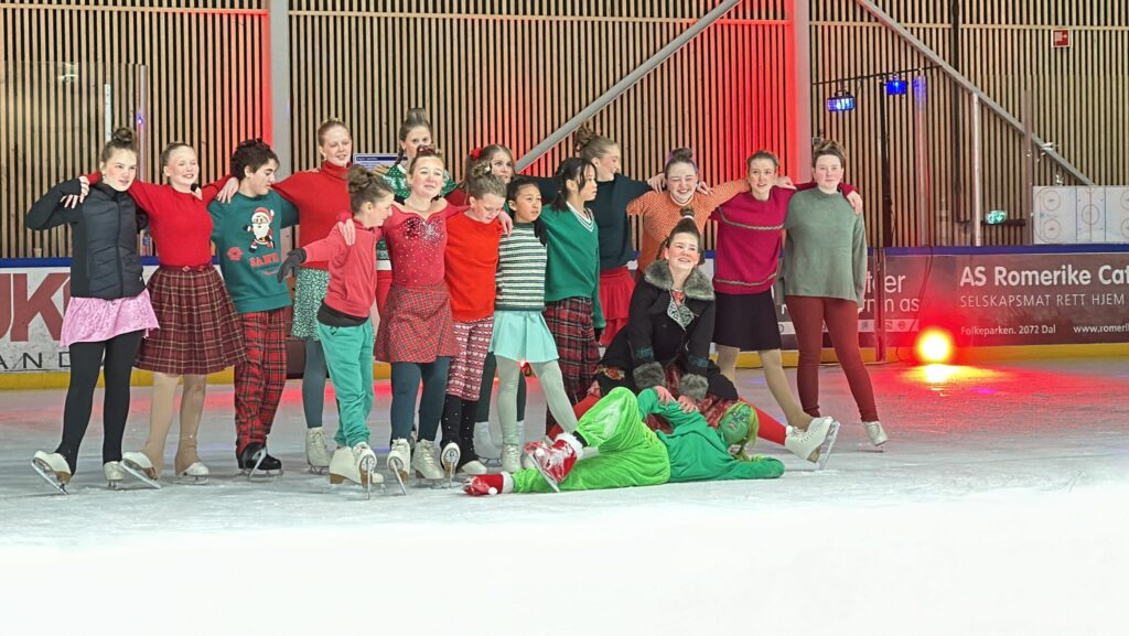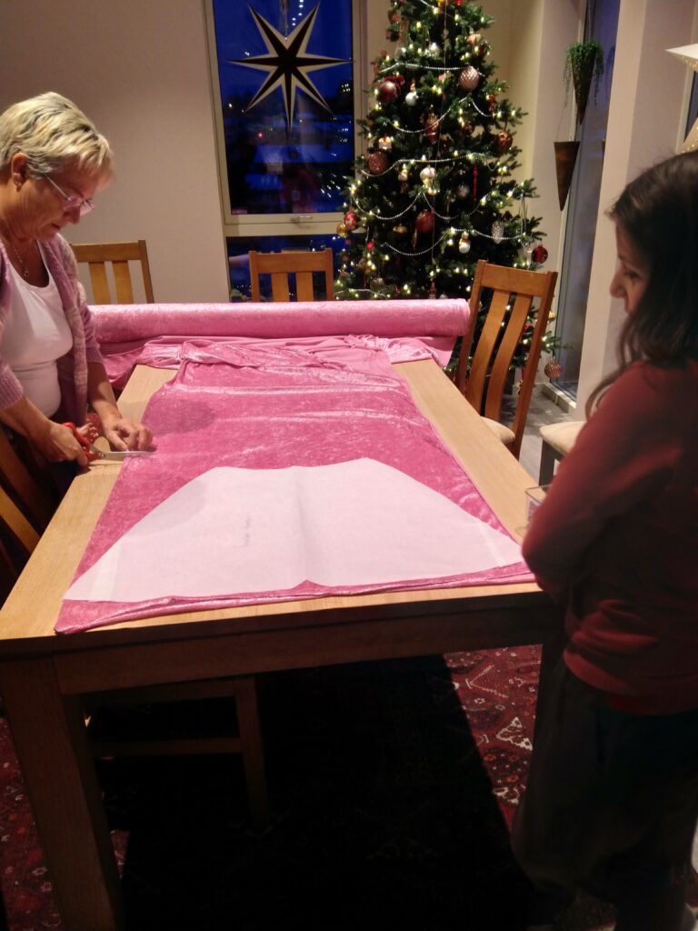 Vient ensuite le spectacle du patinage artistique sur le thème du Grinch. Il a fallu qu’Aléna fasse son costume de scène. Donc un soir après l’ecole nous avons filé jusqu’à chez l’une de ses entraîneuses, Anita, au nord de Jessheim.
