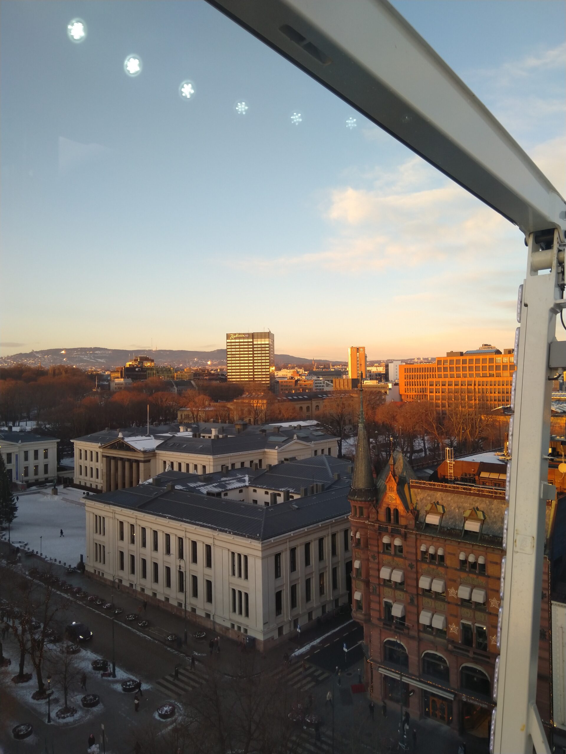 Nous avons donc déambulé dans la ville, fait quelques achats, sommes allées voir le dernier film de Myazaki : « le garçon et le héron », en japonais sous-titré norvégien. Je n’ai pas saisi toutes les subtilités du film. Et le lendemain, nous sommes montées sur la grande roue car elle voulait se rappeler de ce souvenir qu’elle a avec sa tante Camille et ses frères à Paris.