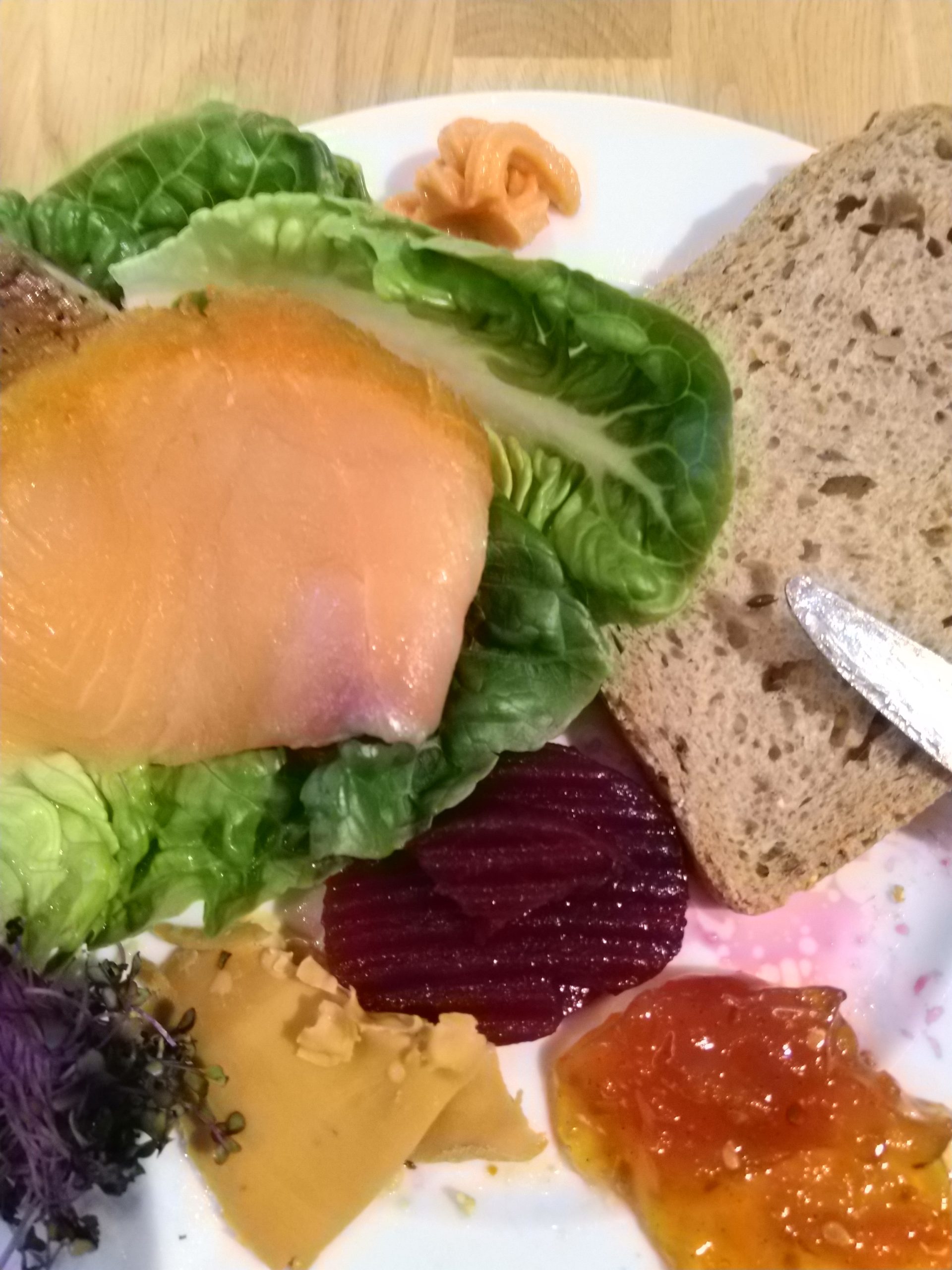 J’ai donc de quoi varié les plaisirs. J’ai ainsi pu goûter au brunost ou geitost : un fromage de chèvre un peu sucré, ou encore au kaviar qui est une sorte de tarama en tube. Pour ce dernier produits, j’ai vu qu’il y en avait de différentes sortes. J’ai pu constaté que rare étaient les clients à ne boire qu’un café. Reste à savoir si ce que les clients prennent à l’hôtel est le reflet de ce qu’ils prennent chez eux.