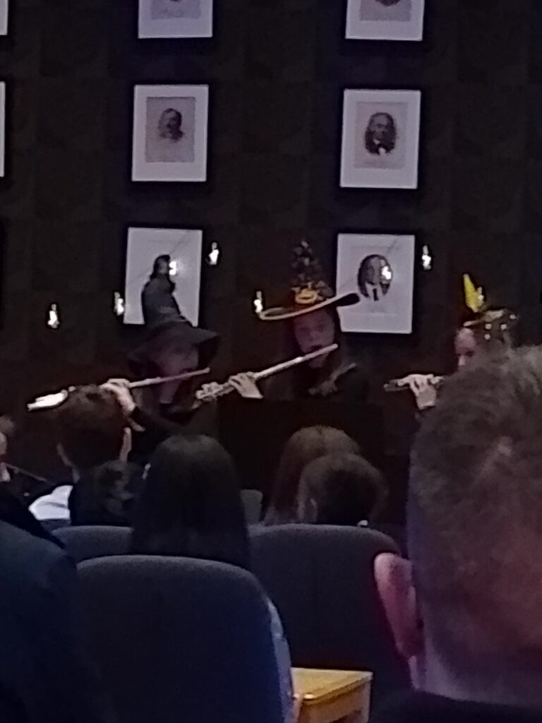 Pour commencer, l’école culturelle a organisé un concert des élèves. Le niveau était trés varié. J’ai été bluffé par une interprétation au piano de l’air de Pirates des Caraïbes par un gamin au déguisement de pirate bien réussi (mais j’étais trop au fond pour avoir une photo correcte). Et Aléna avait une de ses œuvres affichée.