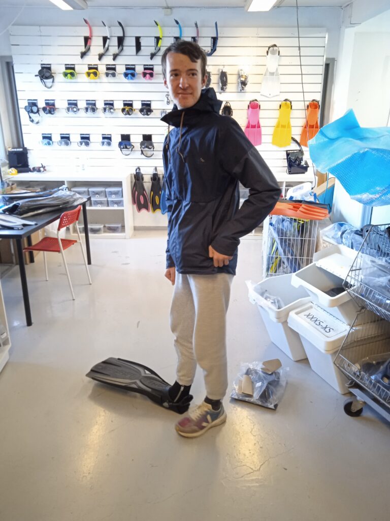 Première étape, après quelques formalités administratives : essayer ses nouvelles palmes !