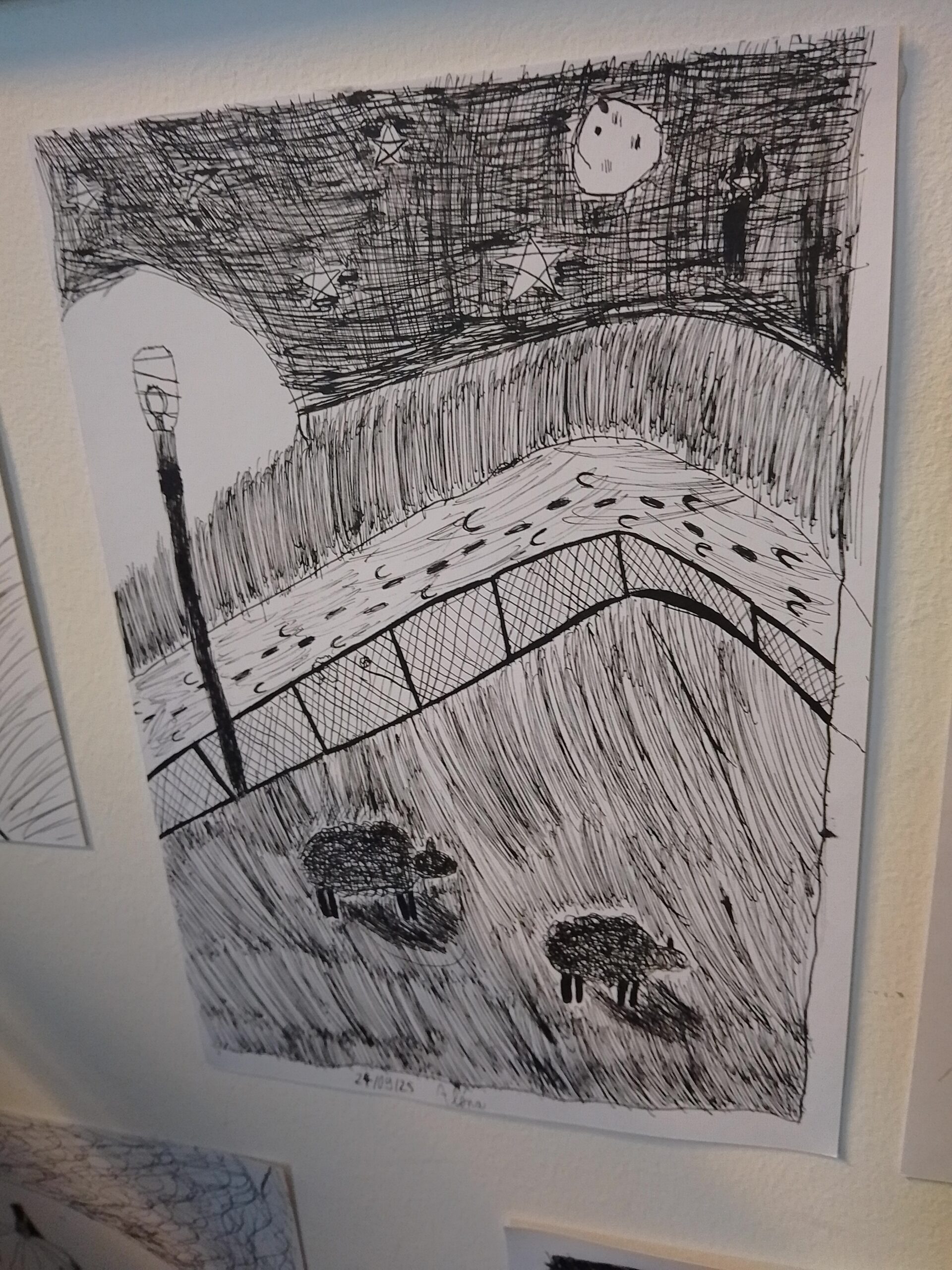 Aléna va à la kulturskole tous les mercredi pour prendre des cours d’art plastique. Fin janvier, leur professeur a organisé une exposition.