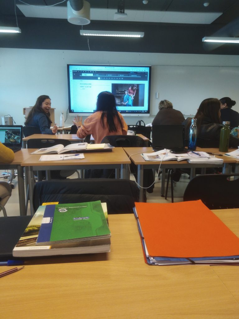 Chaque élève se fait prêter un manuel et un ordinateur portable, nous avons également accès à de nombreuses ressources en ligne (fichiers audios, banques d’exercices…)