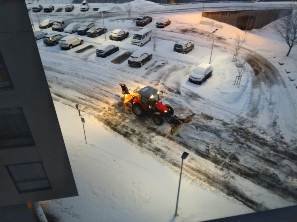 Après le tourbillon d’émotions qui m’agitaient en montant dans l’avion, je suis un peu plus calme ce matin. J’ai réussi au bout de la seconde tentative à récupérer des couronnes norvégiennes, acheter mon titre de transport, trouver le bus pour aller à l’hôtel. L’arrivée sur Oslo était superbe, du blanc partout, de l’eau : lacs, fjords, rivières. Un paysage idyllique. Là, où ce fut moins comique c’est quand il a fallu faire le trajet : arrêt de bus – entrée de l’hôtel sur de la neige glacée. 200 m, et là je repensais à une tirade d’une pièce de théâtre : « Mais que ce que je suis venue faire dans cette galère ?! » J’ai réussi à ne pas chuter, ni me tordre la cheville. Du coup, il est impératif après la signature de mon contrat que je file m’équiper correctement pour cette fin d’hiver norvégienne : manteau et chaussures ! Une nouvelle aventure en perspective : utiliser le norvégien que j’ai pour réaliser mes achats.