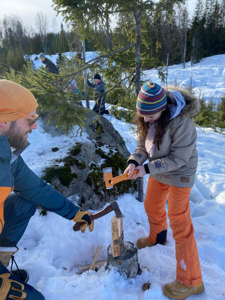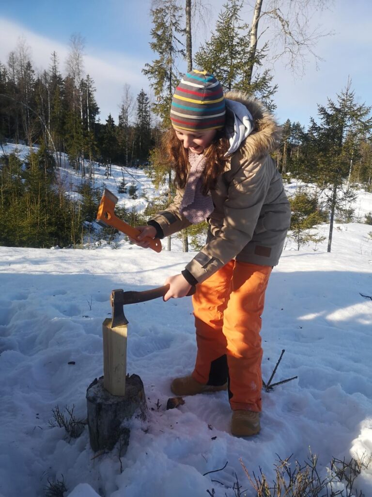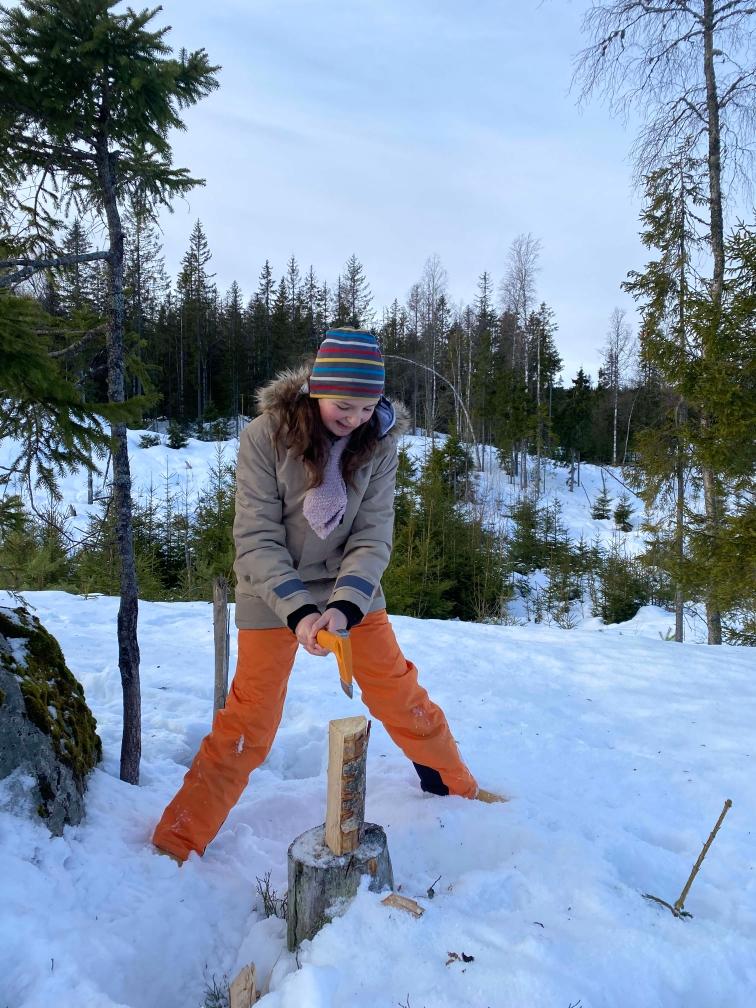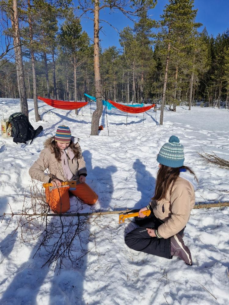 Ensuite, préparatifs du camp, chacun a choisi sa tâche, Aléna a coupé du bois.